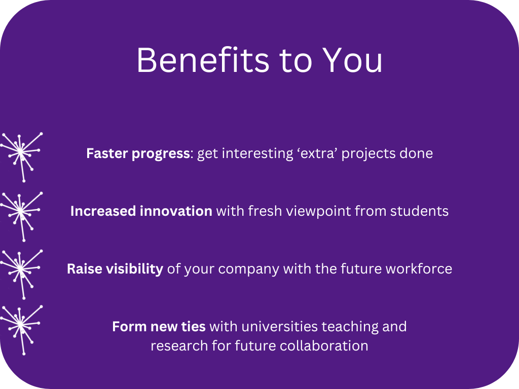 In the final or penultimate year of their degree, students undertake a lengthy individual project. Wouldn’t it be great if you could easily collaborate with them on a topic that could be useful to your organisation?