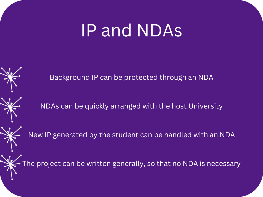 By default, IP for projects is vested in the student doing the project, though you may wish to set up your own IP arrangements with the student/university.